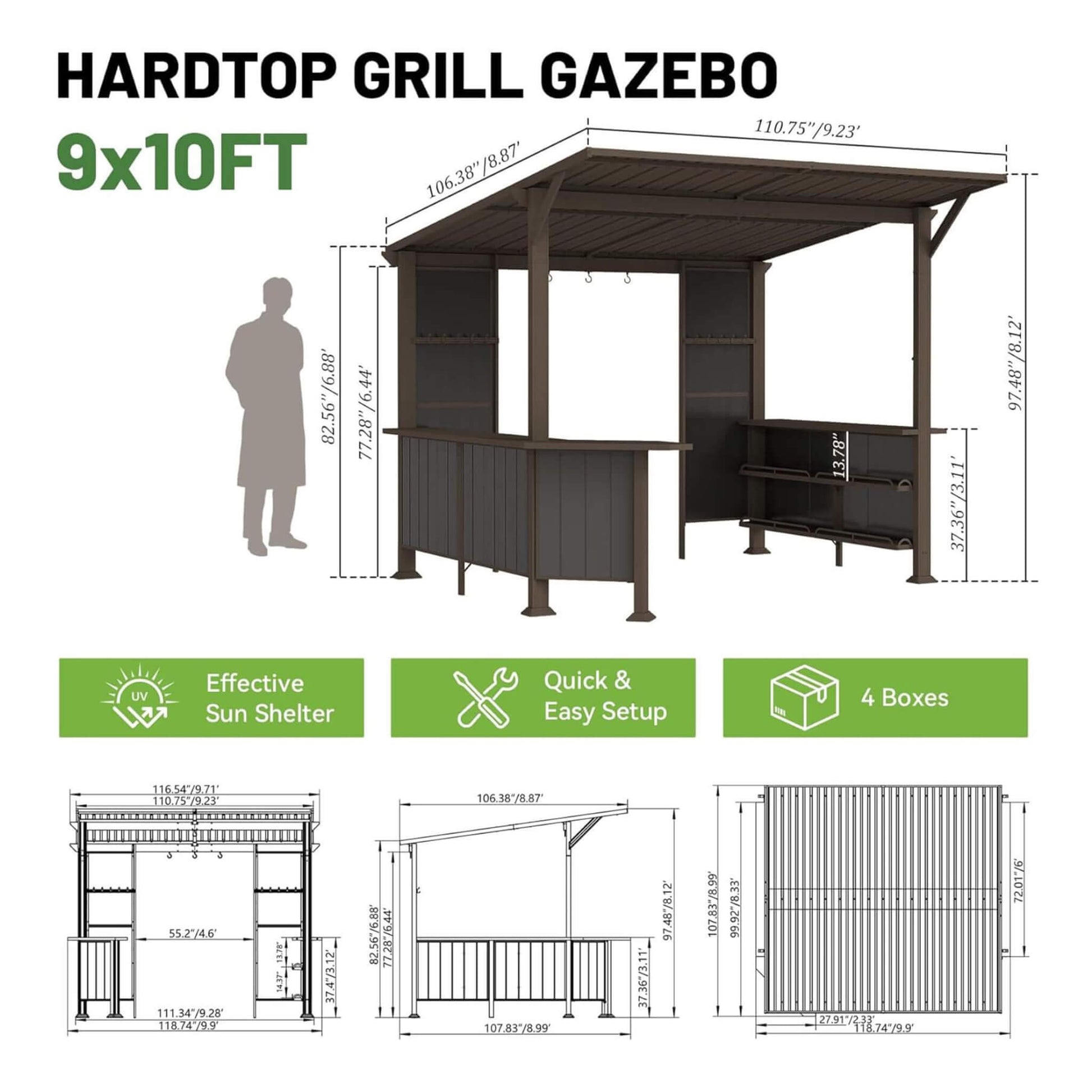 - This grill gazebo features a thoughtfully designed double-layer metal roof that enhances ventilation while providing excellent UV protection, ensuring comfort and durability in all weather conditions.
