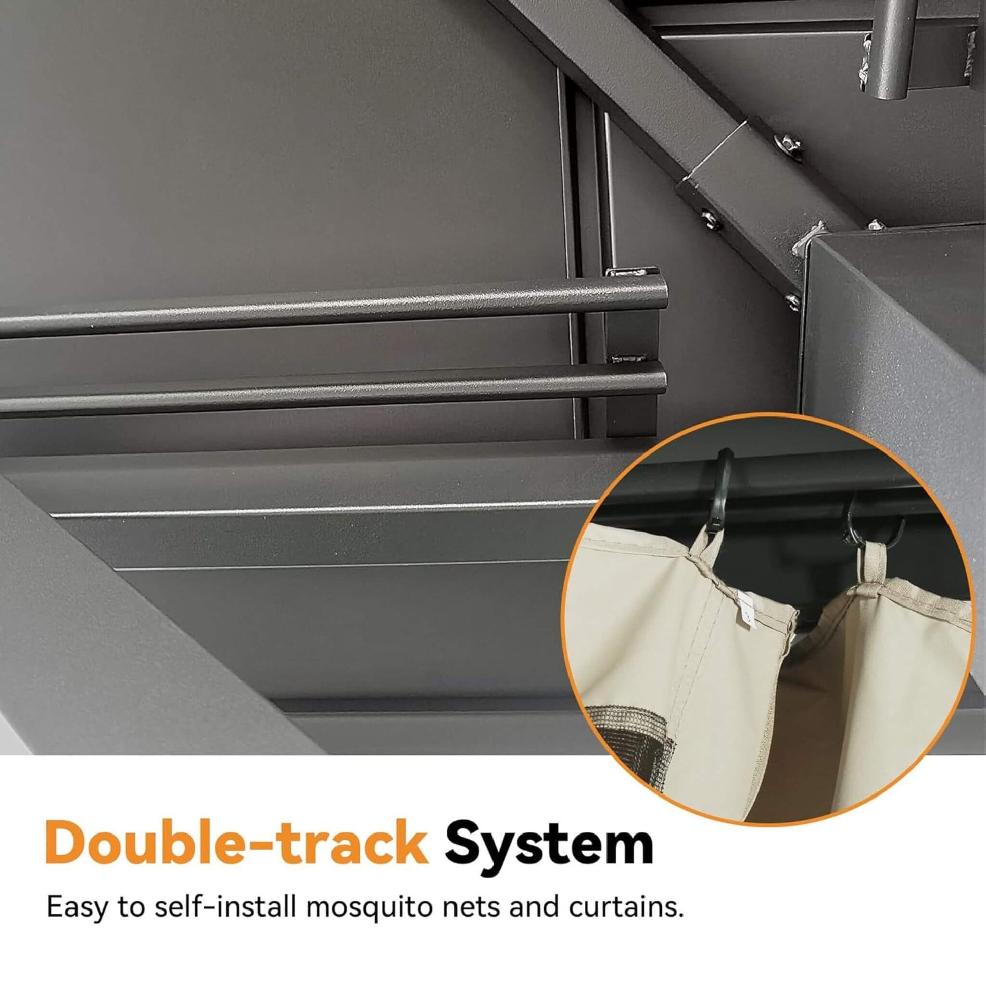 Alora Luxury Double Roof Hardtop Aluminum Gazebo With Decor Hooks, Mosquito Nettings, And LED Lights (SAK91824)