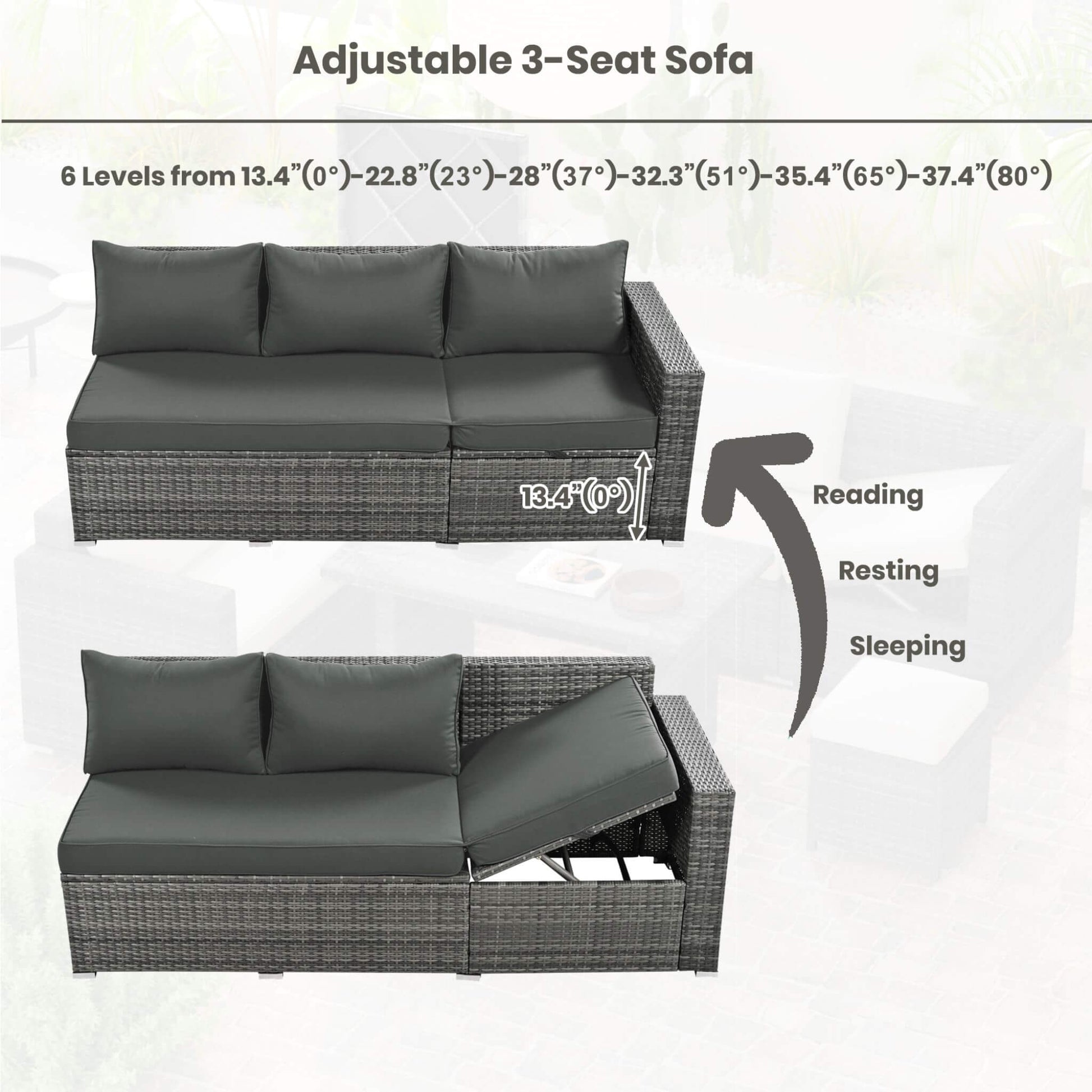 - The 3-seat sofa includes a 6-level adjustable seat for customized comfort options.