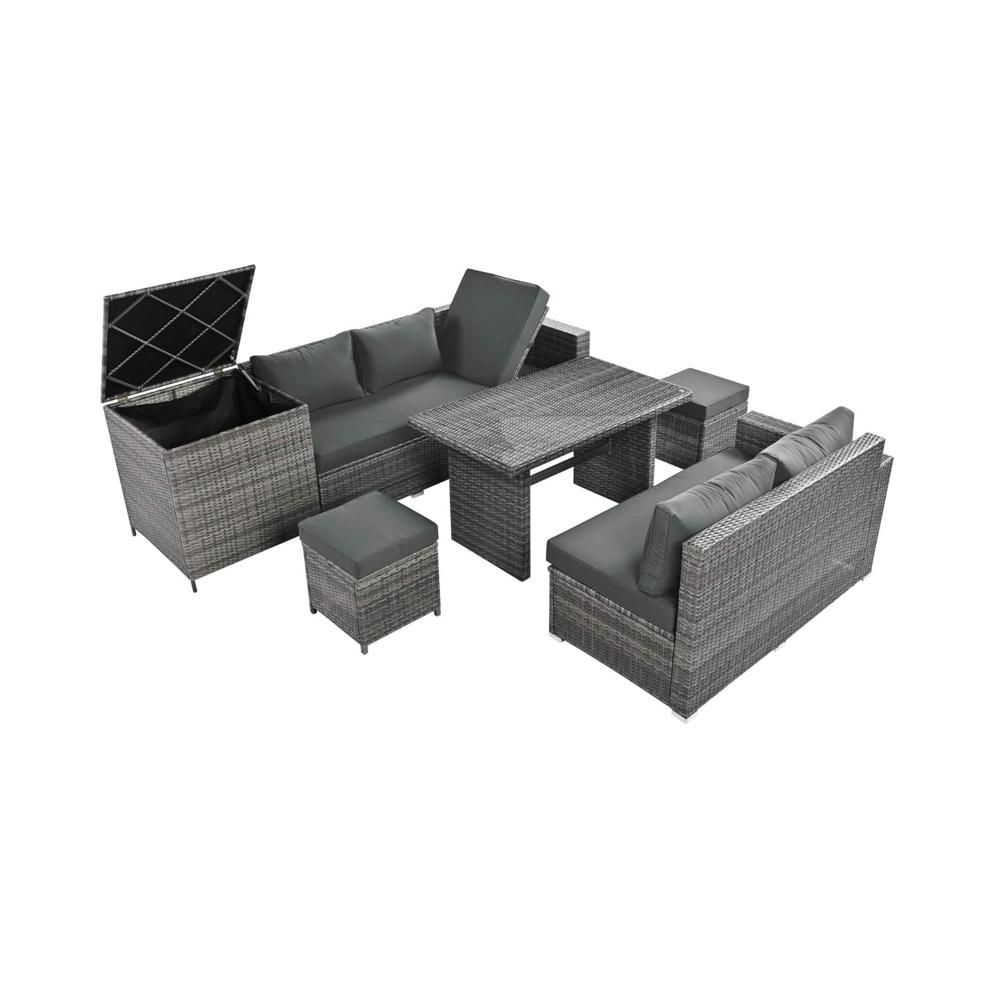 Alora Outdoor 6-Piece All-Weather PE Rattan Sofa Set With Adjustable Seat, Storage Box, Removable Covers, And Tempered Glass Table Top (SAK37221)