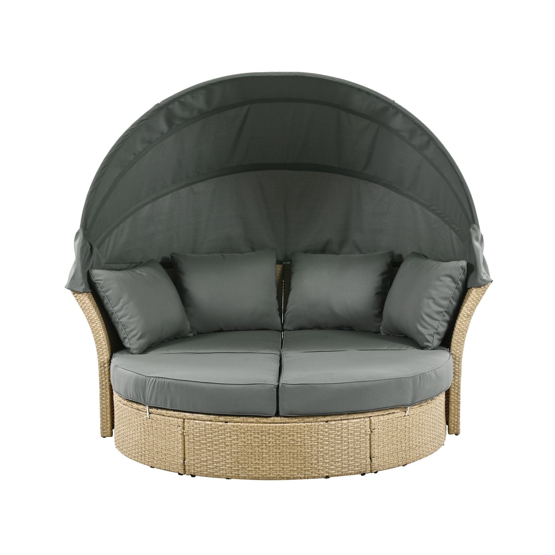 Alora Premium Outdoor Garden Wicker Rattan Patio Daybed With Retractable Canopy (SAK43581)