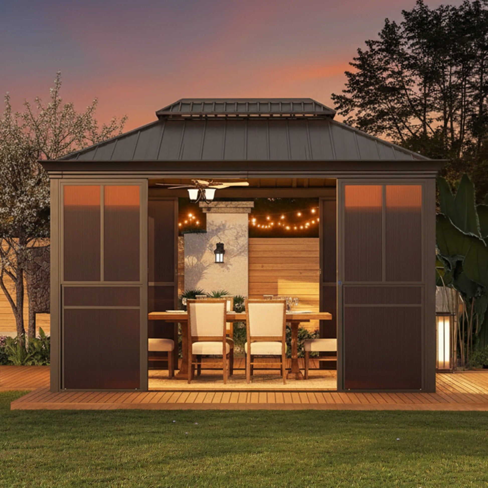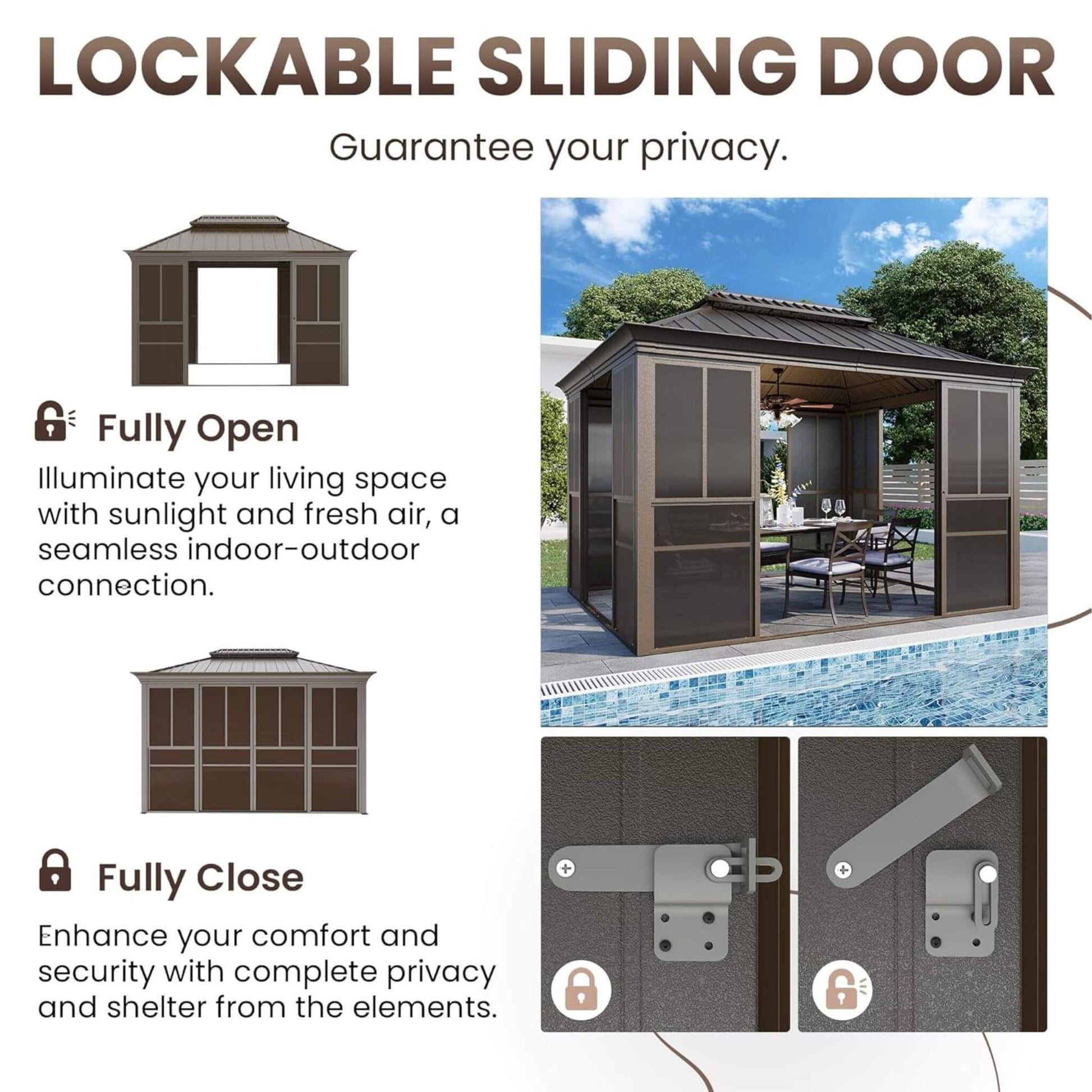 How would you like to enjoy the beauty of your backyard without worrying about sudden rainstorms or pesky insects? This fully-enclosed outdoor black sunroom creates a stunning, secure haven right outside your door! You can relax in a comfortable lounge, host vibrant family dinners, or cultivate a lush greenhouse flooded with natural sunlight. The smooth, lockable sliding doors give you total peace of mind while framing gorgeous, unobstructed views.