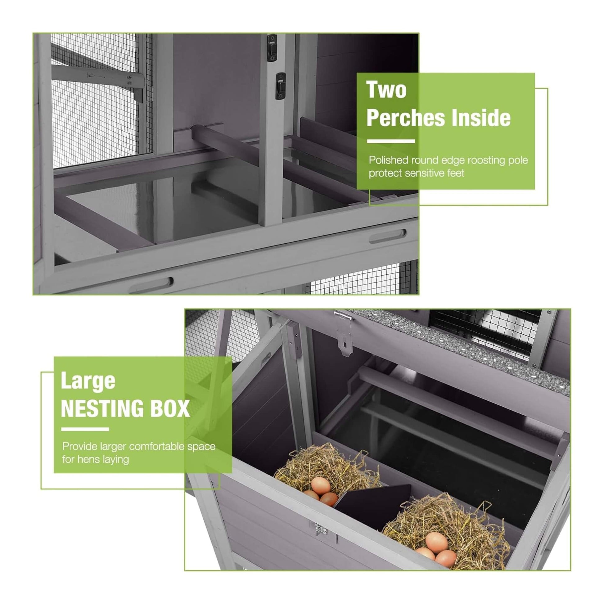 - Premium fir wood and a slanted, weather-resistant roof prevent water buildup, ensuring a dry, comfortable interior for your flock even during the heaviest downpours! It's built to last!